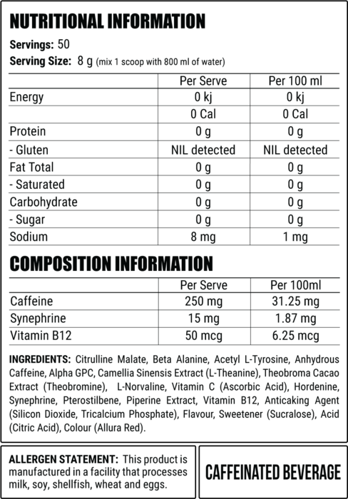 The 840mg of nootropics will give you the mental focus so you can concentrate on your workout and each exercise for maximal performance. Disorder by Faction Labs also has a matrix of 780mg of stimulants, which will help to get you ready to smash out the hardest workouts.